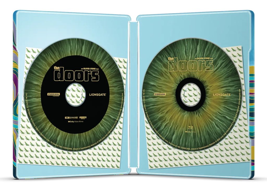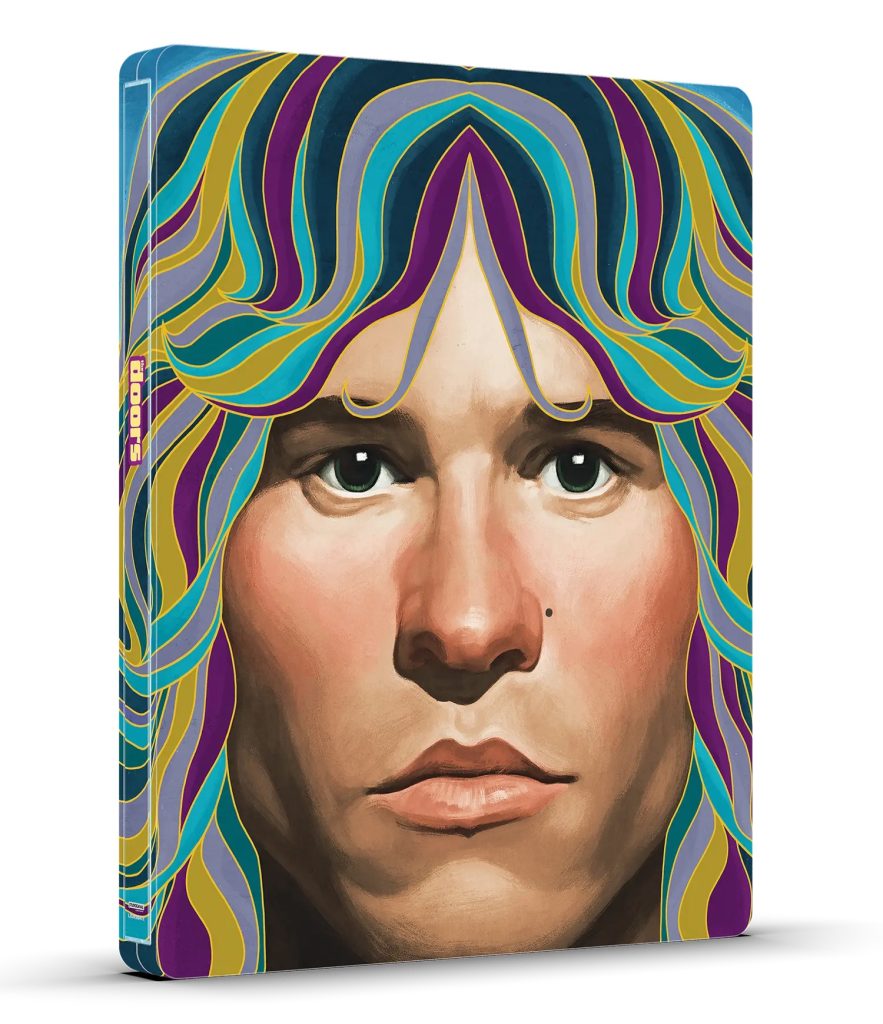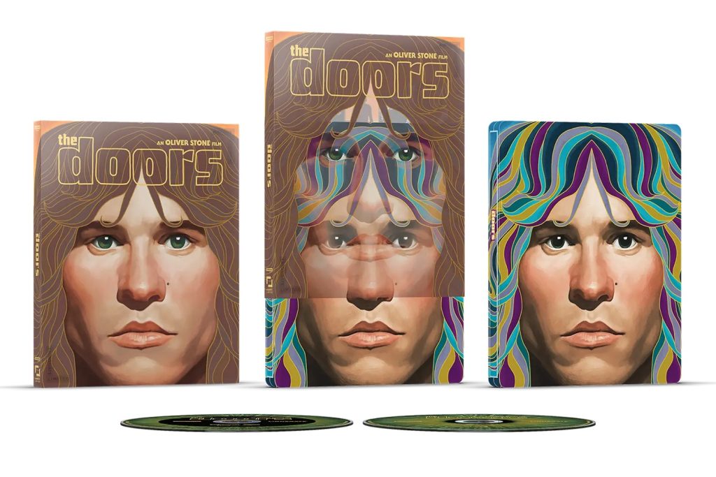 The Doors (1991) gets a steelbook release with a psychedelic slipcover, including both 4K Ultra HD and Blu-ray discs. Directed by Oliver Stone, the film captures the volatile rise of Jim Morrison, portrayed by Val Kilmer, whose presence as poet, provocateur, and rock icon defined a generation.
